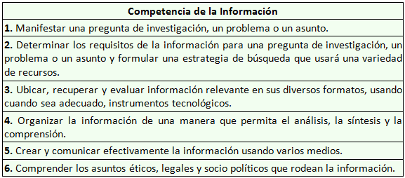 (2002), La Enseñanza de la Competencia en el Manejo de la Información (CMI)